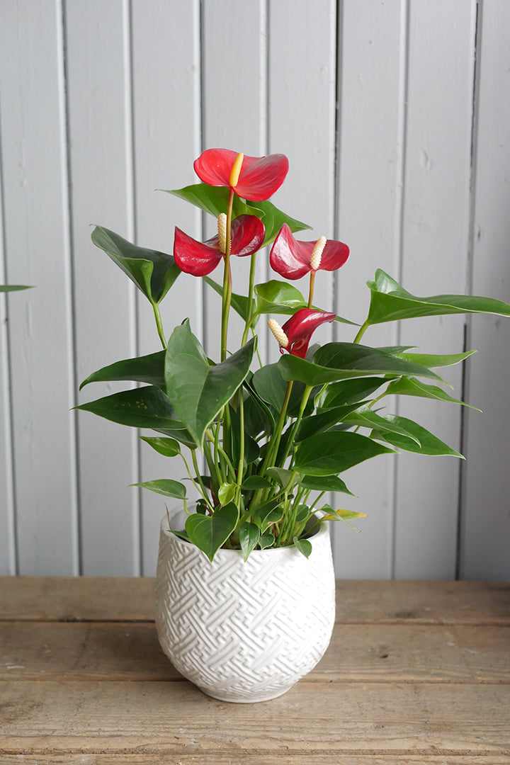 Anthurium, or "tongue of fire", will add a beautiful touch of color to your interior with its shiny, evergreen heart-shaped foliage and its brightly colored flowers.