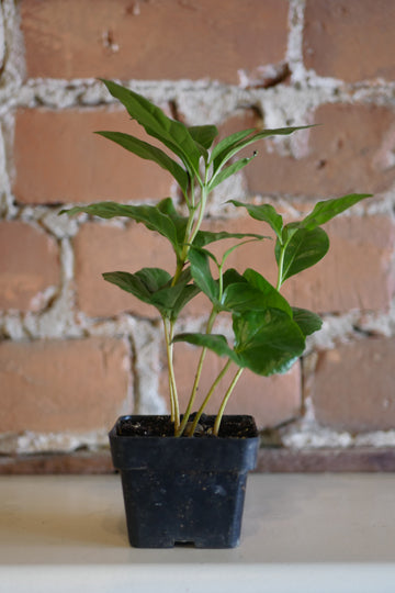 La plante de café au feuillage décoratif est parfaite pour vos terrariums humide. Elle peut également produire des fruits rouges, presque noirs, qui pourront être torréfiés er moulu pour faire son café maison.
