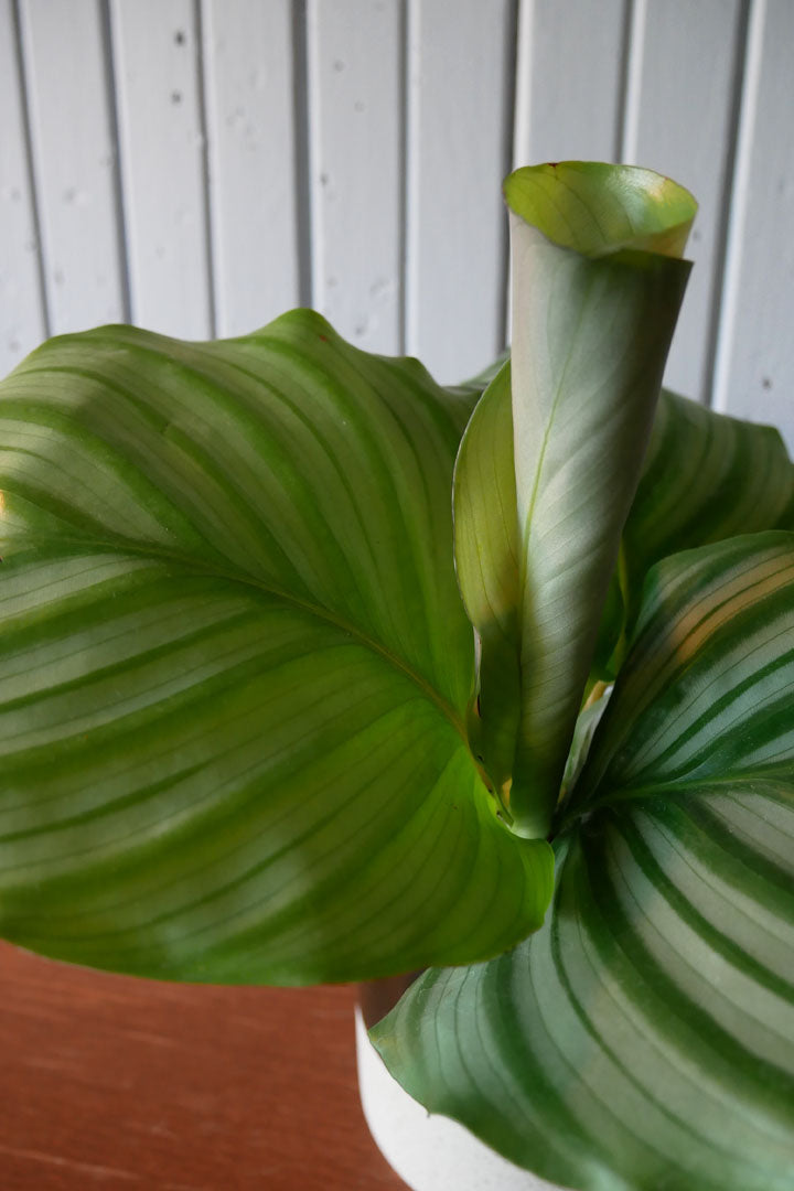 Avec son feuillage ligné de vert et de tons argentés, la Calathea Orbifolia sait se démarquer et apportera une belle touche tropicale à votre décoration d'intérieur.
