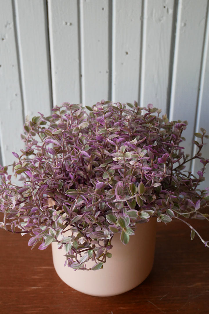 Belle succulente rampante, la Callisia repens Pink Lady charme avec ses petites feuilles ornées de rayures vertes, rosées et crèmes.