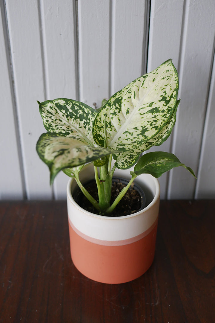 Classique de nos intérieurs, le Dieffenbachia compacta est une plante aux belles nuances de vert et blanc.
