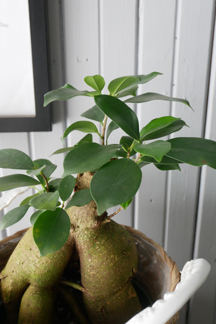 Le Ficus ginseng est recommandé pour les personnes souhaitant se lancer dans l'art du bonsaï. Il a des racines imposantes ramifiées et aériennes, ce qui en fait sa caractéristique première, d'ailleurs "ginseng" en chinois signifie racine. Bien qu'il s'agisse d'une plante d'intérieur, il appréciera de passer l'été en extérieur, à l'ombre.