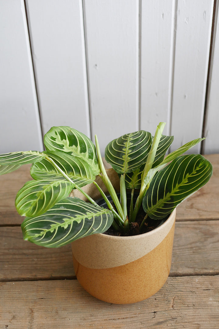 Appelée aussi plante qui prie ou dormeuse (du fait de ses feuilles qui s’étalent en journée et se redressent la nuit), le Maranta vole la vedette aux autres plantes d'intérieur avec son feuillage très ornemental parcouru de lignes.