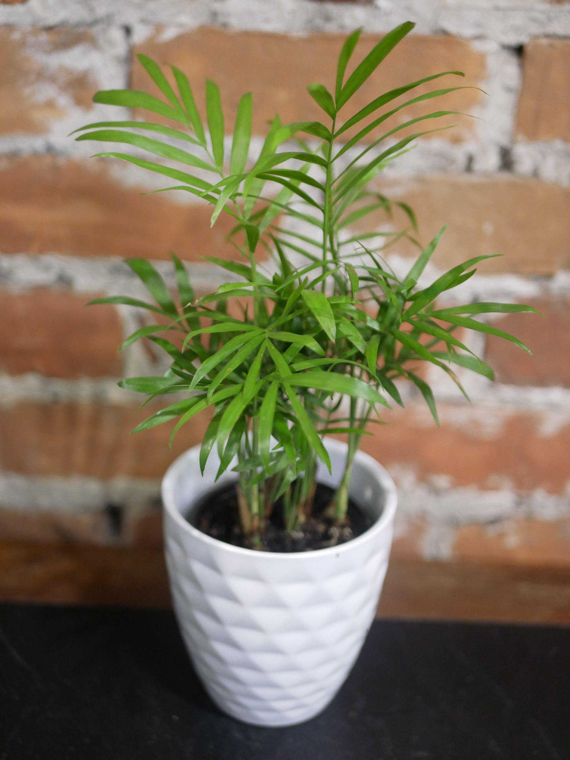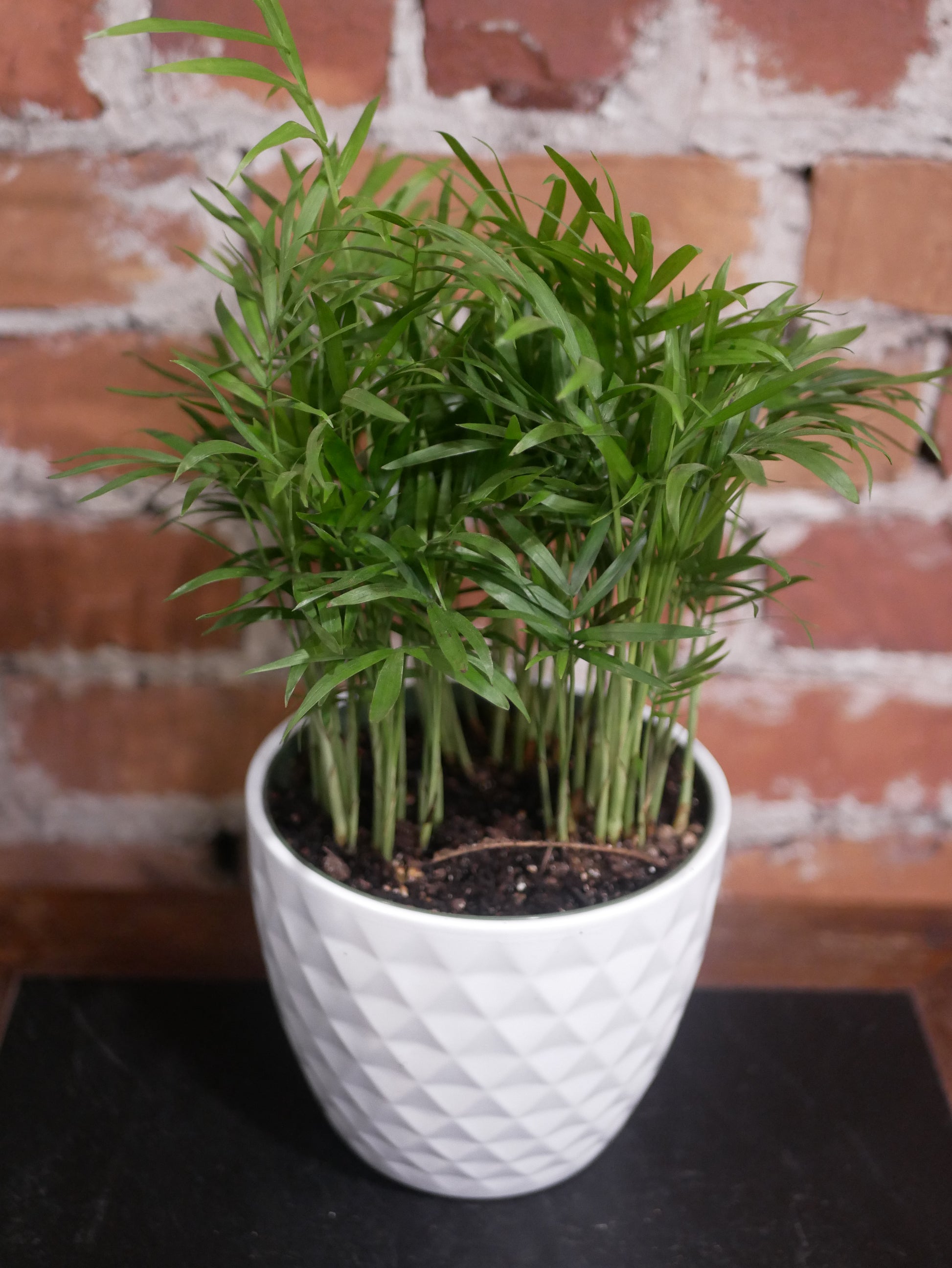 Petit palmier à croissance lente mais pouvant atteindre 1,5 mètres voir 2 mètres, le Palmier nain est une plante parfaite pour l'intérieur puisqu'elle tolère un éclairage un peu plus ombragé et est facile d'entretien.