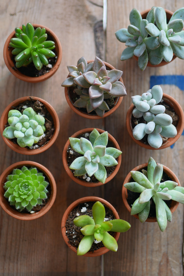 Nos petites succulentes sont le cadeau idéal comme cadeau d'hôtesse ou comme petite attention. Facile d'entretien elles peuvent aussi être une belle idée pour offrir à toute personne voulant commencer sa collection de plantes intérieures.